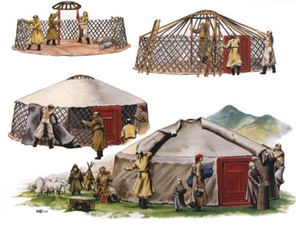 This production, adapted from a Rudyard Kipling story, involved creating two distinct worlds onstage – that of the animals and that of the humans. The director wanted to set the piece in prehistoric, Central Asia. The human world was represented by a stylized yurt.